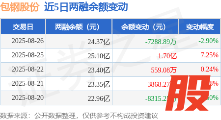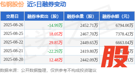 本站消息,8月26日,包钢股份(600010)融资买入8.58亿元,融资偿还9.25亿元,融资净卖出6704.48万元,融资余额23.69亿元,近20个交易日中有11个交易日出现融资净买入。
